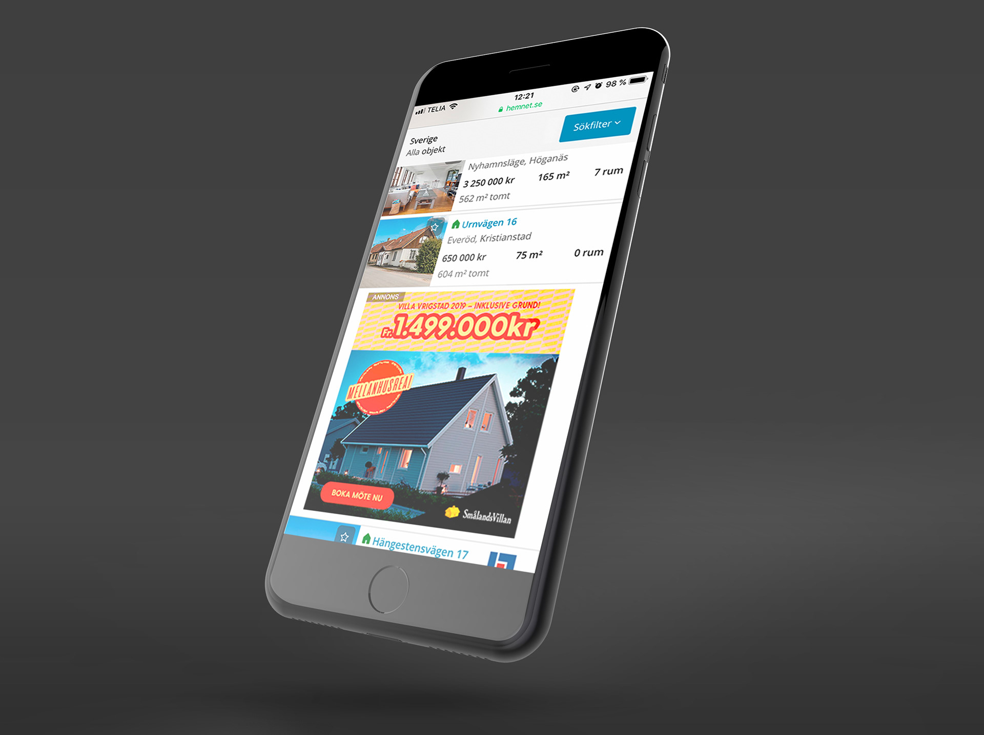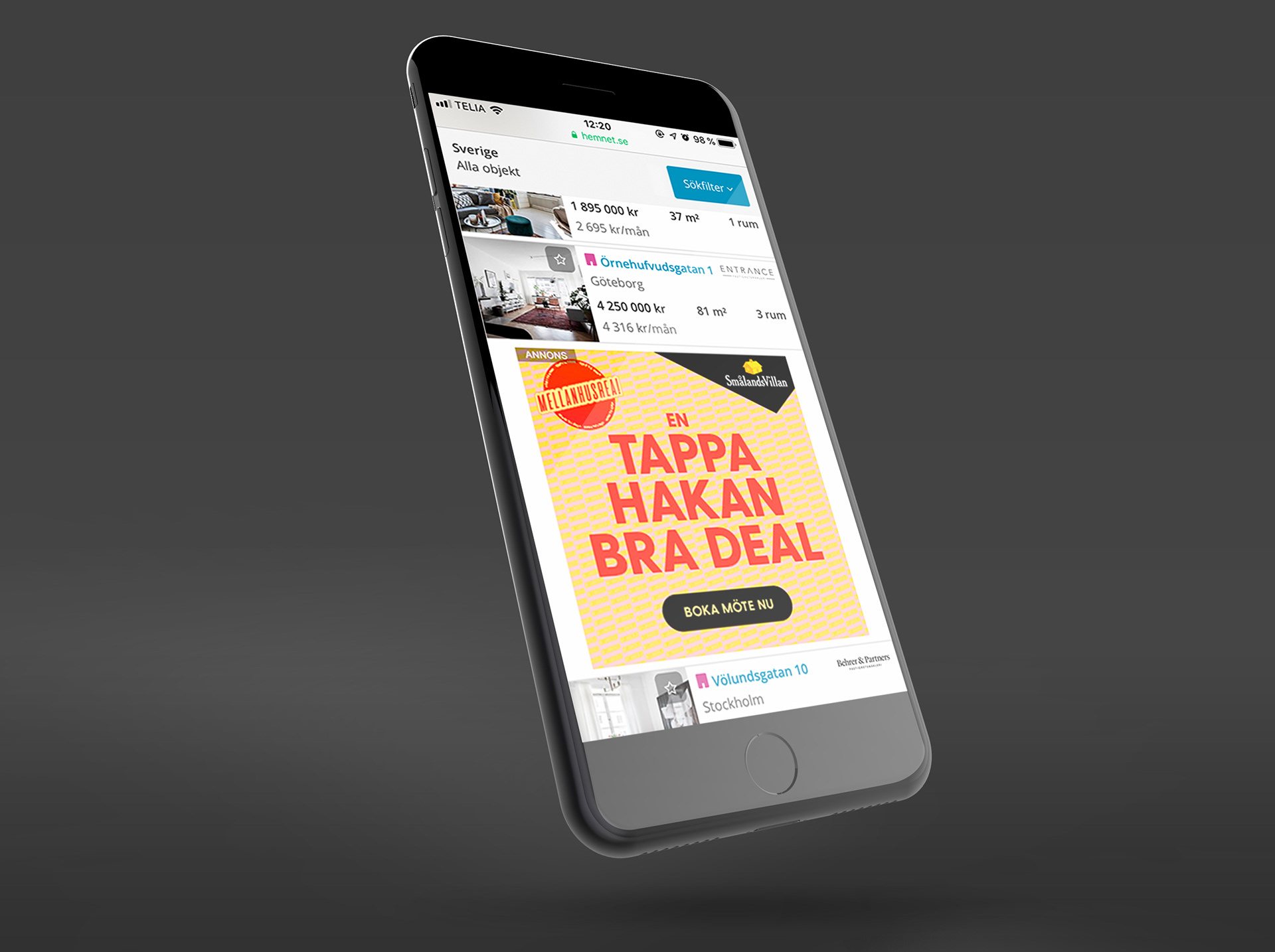 Detta är enheter som tillhör SmålandsVillans kampanj: Mellanhusrea. En kampanj som Business and Emotions gjort. Det jag gjorde själv var att skapa 2 mobil banners och 1 webb banner som syntes på Hemnets hemsida under en tid. Jag skapade även ett kampanjblad som skickats ut till kunder hem i brevlådan. Jag har använt mig av det grafiska maneret som byrån tagit fram, som var väldigt färgglatt tillsammans med stora rubriker. Alla enheter ska påminna om varandra men inte se exakt likadana ut. En målgrupp ung som gammal som är i husletarfasen men har svårt att hitta billigare hus idag som har både bra standard och kvalité.