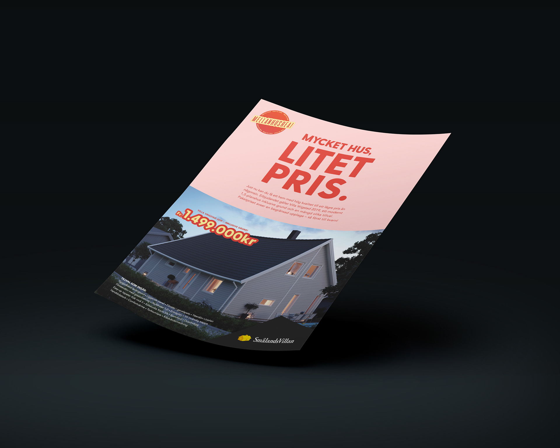 Kund: SmålandsVillan Uppdrag: Kampanjenheter Tryckt & Digitalt Byrå: Business & Emotions Min Befattning: Grafisk Designer Praktikant Program: Photoshop, inDesign, Illustrator